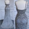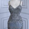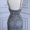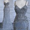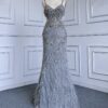 Grey Feathered Cut Out Embellished Evening Gown beautifully hand crafted together with embroidered beaded work patterns all over the dress.