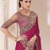 Saree Cherry Sartin Chiffon fabric with sequence & embroidery thread work