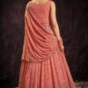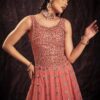 Coral georgette embroidered anarkali suit crafted with thread and sequins work. Comes with Top, bottom & dupatta.