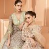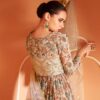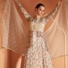 Cream beige net embroidered anarkali suit made with thread zari sequin work. Comes with matching top, bottom and dupatta.