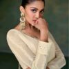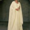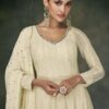 Cream embroidered anarkali Suit, made with thread zari sequin work. Comes with top, trouser and dupatta.