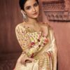 Cream Embroidered Festival Saree, crafted with foliage patterns on the border of the saree and stone work on the saree. Comes with matching blouse.