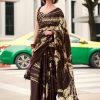 Cream floral print satin crepe saree crafted with all over print design. The saree comes with a matching unstitched blouse.