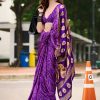 Cream floral print satin crepe saree crafted with all over print design. The saree comes with a matching unstitched blouse.