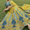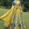 This will fit bust and waist sizes 32,34,36,38,40,42 (UK sizes 6-16). Top length 14-15″ – lehenga length 42” max. Slight variation in colour is possible. Model accessories and latkans not included. Second dupatta is optional and chargeable.