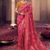 Cream yellow dola silk embroidered wedding saree designed with thread and intricate border work. The saree comes with a matching blouse.