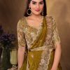 Crush Paper Silk Saree with sequin, moti, stone work on Saree