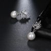 Cute Zircon Flower Pearl Drop Earrings, stud style for brides and bridesmaids. These are for pierced ears only.