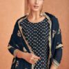 Dark blue faux georgette sharara suit made with thread sequins work. Comes with matching top, bottom and dupatta.