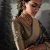Dark grey embroidered banarasi wedding saree, embellished with swarovski stone and thread work enhanced by fancy tassels. The saree comes with a matching blouse.