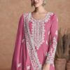 Dark pink silk embroidered palazzo Suit, made with thread zari sequin work. Comes with top, trouser and dupatta.