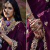 Dark wine embroidered wedding saree, embellished with sequin stone and thread work enhanced by fancy tassels. The saree comes with a matching contrast blouse.