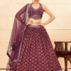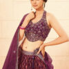 Dark wine faux georgette heavy designer lehenga choli made with handwork thread and sequins. Comes with matching choli and dupatta.
