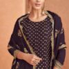 Dark wine faux georgette sharara suit made with thread sequins work. Comes with matching top, bottom and dupatta.