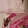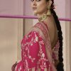 Deep Pink embroidered wedding saree, embellished with sequin stone and thread work enhanced by fancy tassels. The saree comes with a matching contrast blouse.