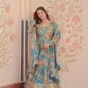 Gown Fabrics & Work :- Russian Silk Rich Digital Print With Embroidered Sequins Work