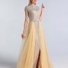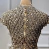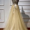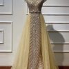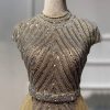 Dubai Design O-Neck Beaded Evening Dress is beautifully weaved together with beaded work patterns over the dress with empire waistline and drape net tulle this comes with bra padded.