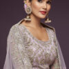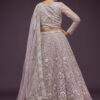 Dusty lilac net sangeet bridal lehenga choli, designed with thread, badla & glitter, zari work. Paired with matching embroidered blouse and dupatta.