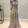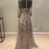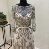 Elegant Light Grey Long Beaded Evening A- line dress is beautifully weaved together with embroidered stone beaded sequin work patterns all over the dress with bra padded .