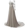 Elegant Long Beaded Evening A- line dress is beautifully weaved together with embroidered stone beaded sequin work patterns all over the dress with bra padded .