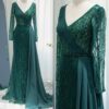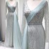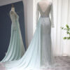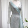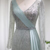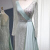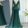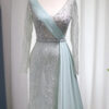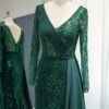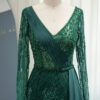 Elegant long sleeve sequin embellished evening bridal party dress with skirt drape, beautifully hand crafted together with sequins all over the dress.