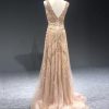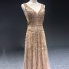 Elegant V Neck Crystal Evening Bridal Dress, beautifully hand made together with crystal bead patterns on the dress with empire waistline this comes with padded bust.
