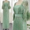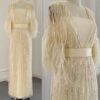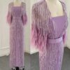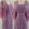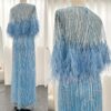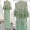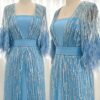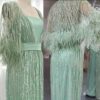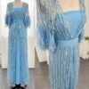 Feathered cape sleeve sequinned modest evening dress, beautifully hand crafted together with embroidered sequin work all over the cape dress, inner dress will be plain.