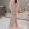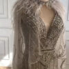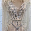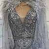 Feathered Cape Trail Back Diamond Evening Dress, beautifully hand made together with crystal bead patterns on the dress with empire waistline this comes with padded bust.