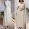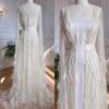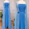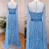 Feathered long cape sleeve sequinned modest evening dress, beautifully hand crafted together with embroidered sequin work all over the cape dress, inner dress will be plain.