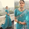 Saree Fabric firozi pure crepe Saree With Jari ,Cut-Dana & Moti Heavy Work 5.5 Meter. Blouse Pure Silk 1 Meter Unstitched.