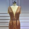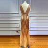 Gold Tassel Luxury Evening Dress is beautifully weaved together with beaded, Sequinned,Crystal work patterns over the dress with bra padded. Empire waistline.