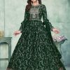 Green Abaya style georgette embroidered anarkali suit, made with resham work and patch border with touch up patterns on the yoke and lower part of the kameez.