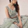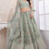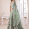Green art silk embroidered bridal lehenga choli, made with thread and zarkan work. Comes with matching organza silk lehenga, choli and net dupatta.