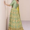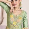 Green embroidered anarkali suit made with thread zari sequin work. Comes with matching top, bottom and dupatta.