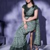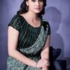 Green chiffon lycra designer saree crafted with sequin and cord embroidery work. The saree comes with a unstitched matching raw silk blouse.