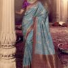 Green dola silk embroidered wedding saree designed with thread and intricate border work. The saree comes with a matching blouse.