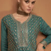 Green embroidered gharara style suit made with thread and zari patch border work. Comes with Top, bottom and dupatta.