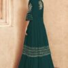 Green Embroidered Jacket Style Anarkali Gown made with thread and patch border work. Comes with Top inner and jacket. No dupatta.