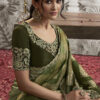 Green fancy silk wedding reception wear saree made with intricate embroidery border work. The saree comes with a matching blouse.