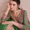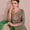 Green floral long choli lehenga suit made with thread zari sequin work. Comes with matching top, skirt and dupatta.