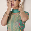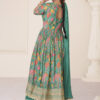 Green floral organza silk anarkali suit made with thread sequin and patch border work. Comes with matching top and dupatta.