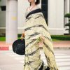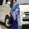 Green floral print satin crepe saree crafted with all over print design. The saree comes with a matching unstitched blouse.