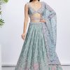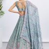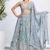 Green floral sequinned wedding lehenga Choli in pure chiffon delicately made with, thread, sequin, stone and diamond work. Comes with a matching choli and dupatta.