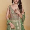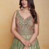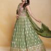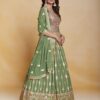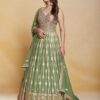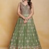 Green georgette embroidered anarkali suit crafted with thread mirror and sequins work. Comes with Top, bottom & dupatta.