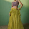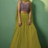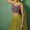 Green georgette embroidered lehenga choli, made with thread, sequin and work. Comes with a matching georgette lehenga velvet choli and georgette dupatta.