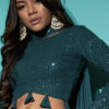Green georgette pleated lehenga choli, embroidered with thread resham sequence work. Comes with a matching choli and embroidered dupatta.