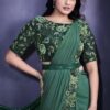 Green lycra designer saree crafted with sequin and cord embroidery work. The saree comes with a unstitched matching raw silk blouse.