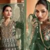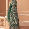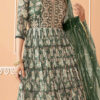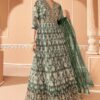 Green net embroidered anarkali suit made with thread zari sequin work. Comes with matching top, bottom and dupatta.