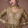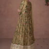 Green organza silk anarkali gown, made with thread zari sequin work. Comes with matching top and dupatta. Bottom pant is not included in gown.