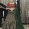 Green & red georgette party wear lehenga choli, thread with sequence embroidered work. Lehenga comes with a matching choli and net dupatta.